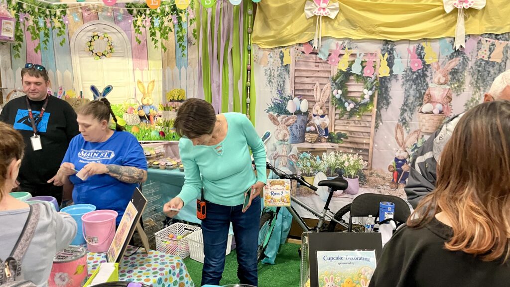 The event featured hands-on fun for families, including decorate-your-own cupcake stations, cookies, and Easter baskets that were generously donated by multiple vendors throughout the gallery. Raeann shared that these elements were part of her initial plan, and she invited vendors to contribute baskets and support the additional giveaways.