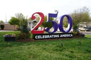 Recently, the Town of Mooresville unveiled its America 250 Celebration installation at the corner of Main Street and McLelland Avenue in Downtown Mooresville, creating a vibrant community photo opportunity. Community members gathered to celebrate the unveiling and kick off the Town of Mooresville’s participation in the national commemoration.
