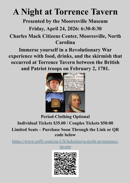 Taking place on April 24, 2026 from 6:30-8:30 p.m. at the Charles Mack Citizen Center, guests are invited to immerse themselves in a Revolutionary War experience with food, drinks, and the skirmish that occurred at Torrence Tavern between the British and Patriot troops on February 2, 1781. Tickets are available through the Mooresville Museum at www.themooresvillemuseum.org. - Town of Troutman Independence Day Parade