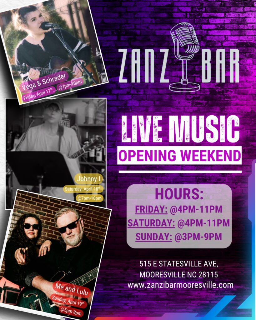 For more information, visit zanzibarmooresville.com, call 980-249-5254, or email zanzibarmooresville@gmail.com.